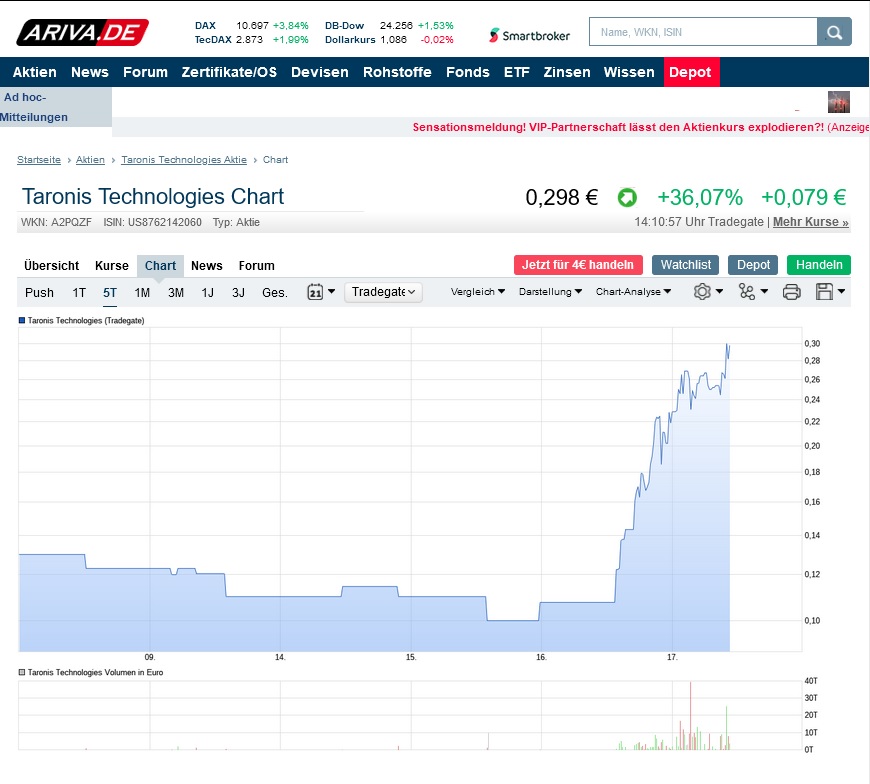 Meldung (Arbeitsplätze) bezieht sich aber auf Taronis Fuels (TRNF) und das hier ist Taronis Technologie (TRNX) ?