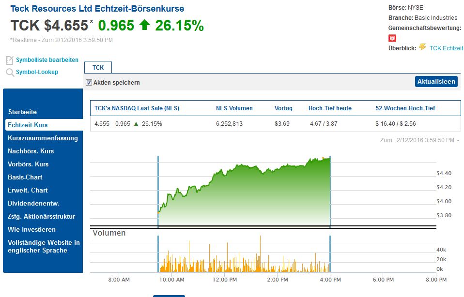 da gehts Teck deutlich besser. Die "perfekte" Bergbau-Aktie wäre es meiner Meinung