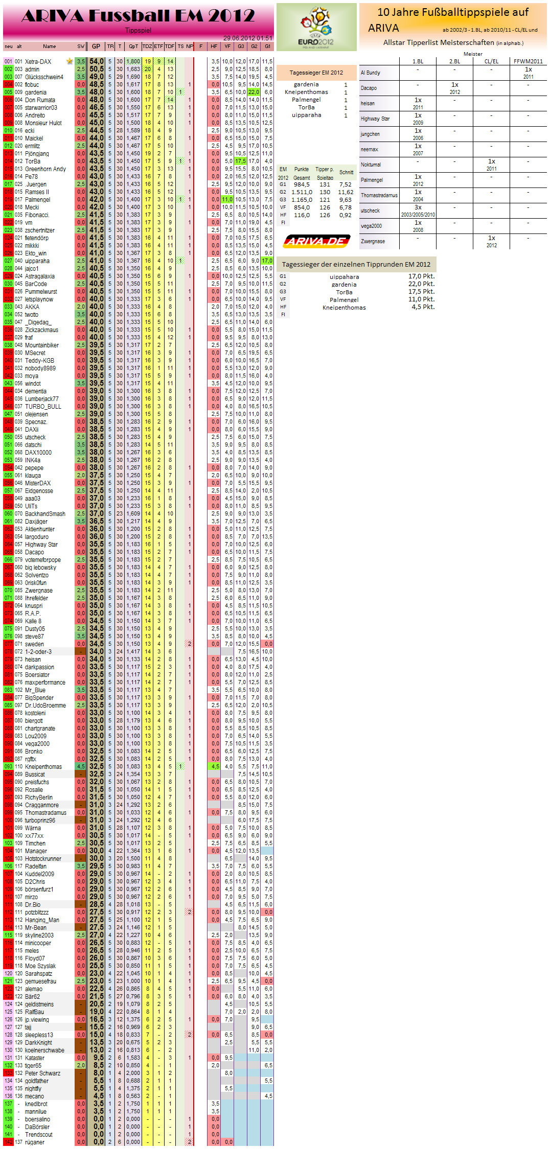 ENDAUSWERTUNG Tageswertung Tipprunde 5 EM2012