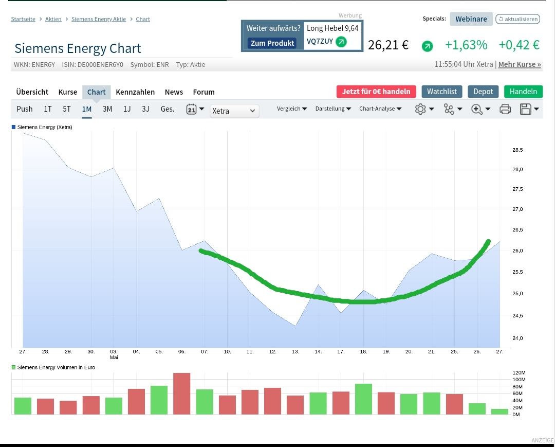 Chart.Frage, wie tief wird der RSI noch fallen? Geht eigentlich kaum noch. Ich denke nun ,ohne Hintergrundwissen zu haben, hier wir bei SE massiv gedrückt, denn Siemens wird doch nicht seine Anteile nun verscherbeln?