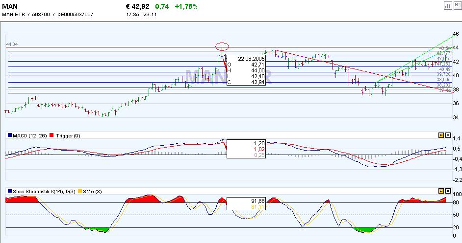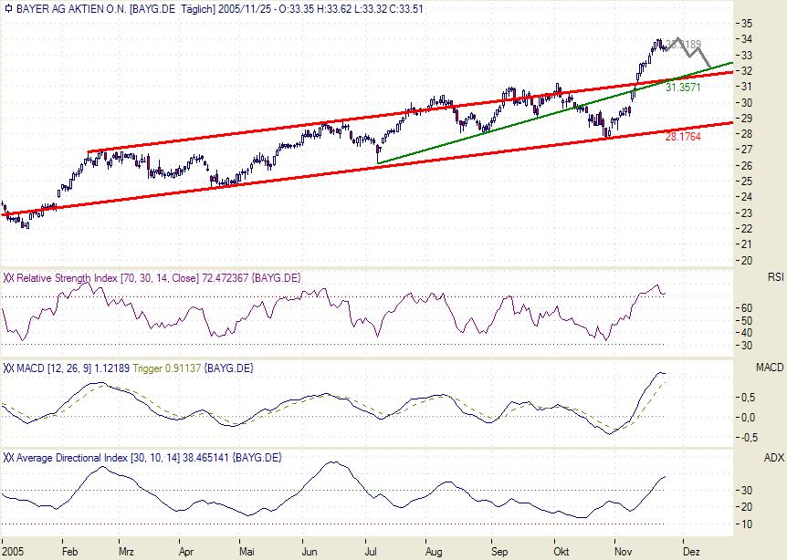 ebenfalls ein möglicher Doppeltopkanditat. Allerdings wirklich sehr stark in letzter Zeit. Short würde ich jetzt nicht mehr anfassen. Bin ja schon short, Schein hat noch Laufzeit bis Juni 06 und bleibt erstmal liegen mal schauen ob es zum Doppeltop kommt, dann kauf ich nach wenn nicht geht´s raus!