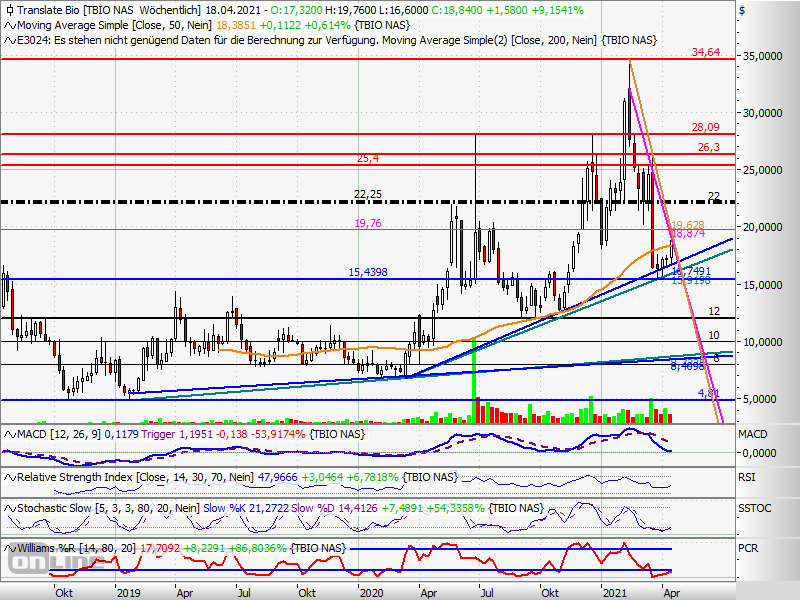 sieht man stabile, längerfristige Uptrends sowie einen kurzfristigen, heftigen Downtrend seit Mitte Februar, der noch nicht gebrochen werden konnte. Die Indikatoren geben hier jedoch schon zarte Kaufsignale (außer dem Trendfolger MACD, der noch einige Zeit brauchen wird), so daß im Laufe der nächsten 2 -3 Wochen mit dem endgültigen Ausbruch aus dem Abwärtstrend auch im längerfristigen Bild zu rechnen ist. Ein Überschreiten der ultimativen Widerstandszone 22.00 / 22.25 würde den Weg dann endgültig wieder freimachen auf höhere Widerstände und das BISHERIGE All Time High 34.64. Aber soweit sind wir noch nicht. Sowohl die fundamentale Entwicklung als auch die des Charts braucht in der Regel seine Zeit, sofern nicht Ereignisse eintreten, die dies verkürzen. Man kennt ja die exakten Pläne des Partners Sanofi nicht . . .
