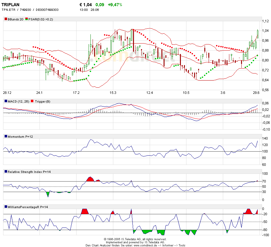 Sollte sich der Kurs um die 1 € eine Zeit halten,wer­de ich Triplan wieder ins Visier nehmen.