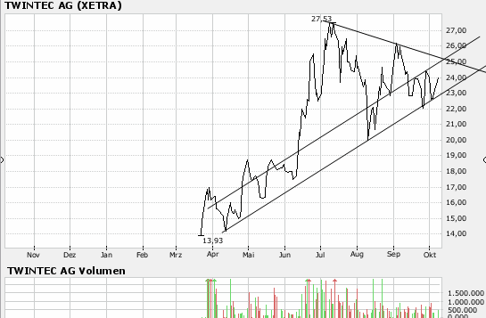 ich hatte Twintec im Juni im Depot bei 23,77. Jetzt, im Oktober, immer noch 23,70.