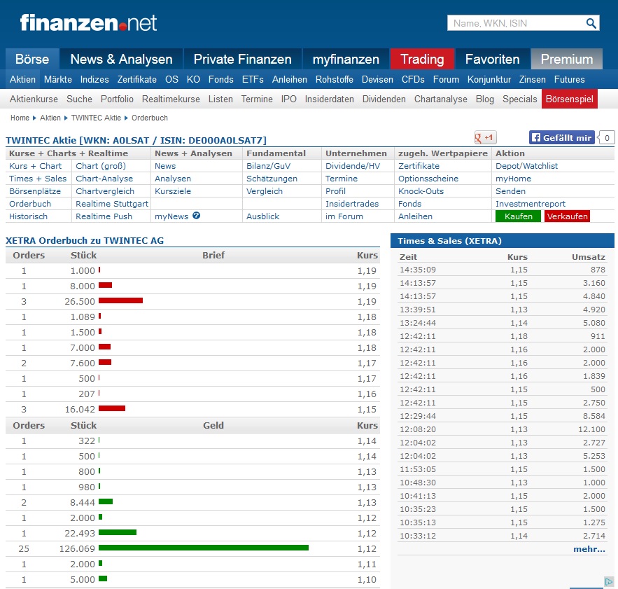 War ja nicht anders zu erwarten wie ich angekündig habe, wo ist jetzt die große Order bei 1,12 ganz schnell wieder weg. Nur ein ganz kleiner Teil ausgeführt!