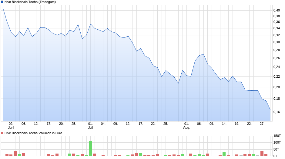 denn da lief der HIVE-Kurs wegen dem hauptsächlichen BTC-Cloud-Mining proportional zum Bitcoinpreis.