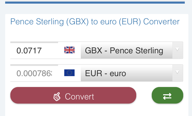 0,0007 Pfund = 0,00077 Euro