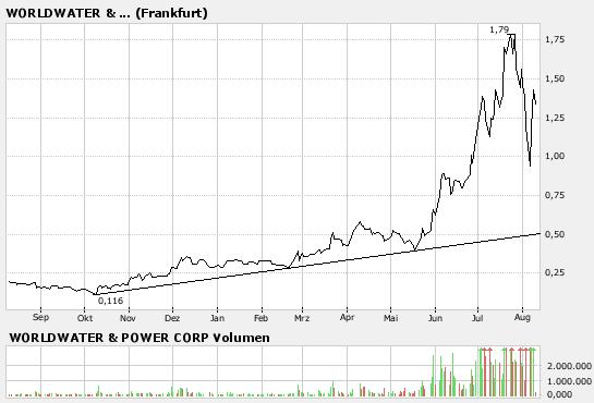 Worldwater:auf akt. 1,38 + 16,94%...die 1.Position short, Stop 1,45...vorgestern Abend noch bei 0,85.