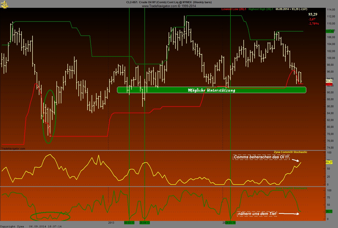 Zur Erklärung von dem Stochastic: Longposi minus Shortposi dividiert durch das gesamte open Interest der letzten 26 Wochen.
