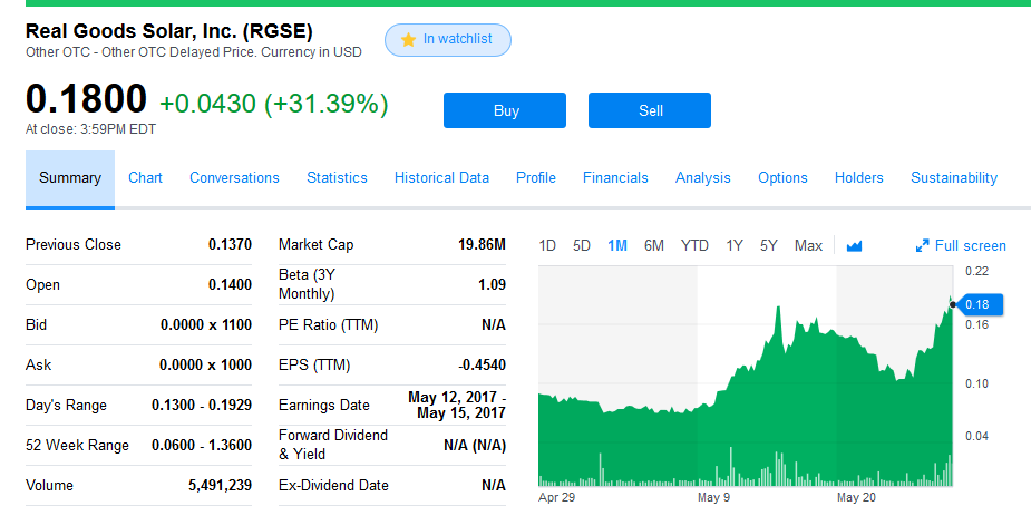 Lieblingslosseraktie RGSE hat sich an der OTC ebenfalls verdoppelt von 0,07 auf 0,13. RGSE ist irgendwie immer noch die billlligste Solaraktie die ich so auf dem Schirm habe.