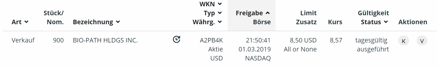 sehe gerade bin durch die bänkster sogar großzügig über Limit bedient worden $8.57 dann macht es runde +50% profits :D