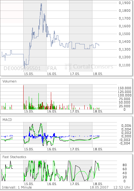 Seit Freitag sind bei Wapme Käufer am Werk. Ich habe mir nun auch ein paar mal auf die Seite gepackt. Sollte nun das Hoch vor dem Wochenende­ genommen werden (das lag bei 12,9), dann könnte Wapme noch ein klein wenig weiter laufen. Ist für mich aber nur ein kleiner Zock am Rande.