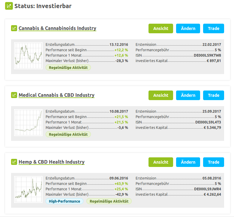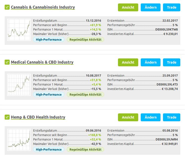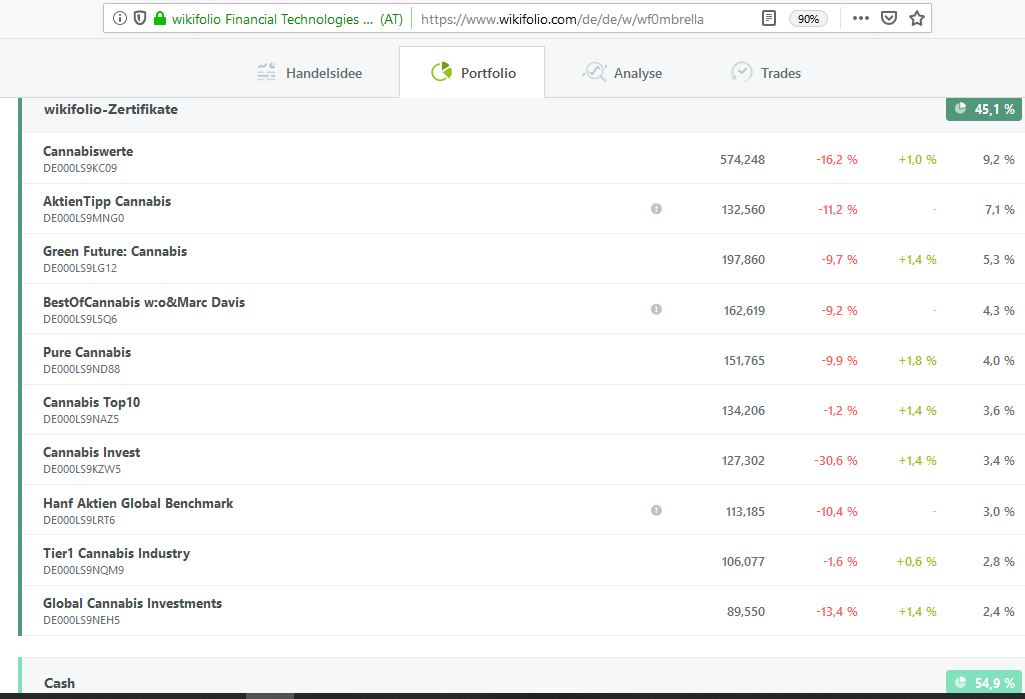 Betroffen sind derzeit das "Cannabis & Cannabinoids Industry" - Wikifolio