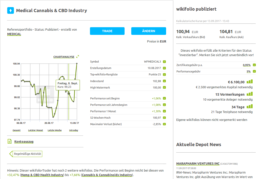 Aktuelles Portfolio "Medical Cannabis & CBD Industry" - Wikifolio (WFMEDICAL3)