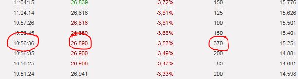 | 10:56:36 | 26,890 | -2,19% | 370 | 15.251 |