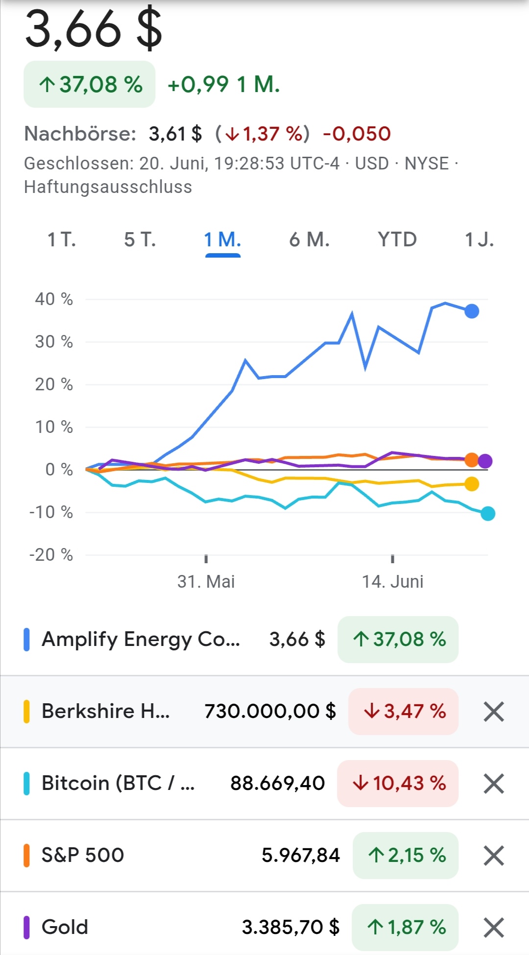 Auch kann jeder sehen, dass im Juli der Gaspreis auf 1 Jahressich­t um über 100% stieg. Das ist Inflationä­r und die Fed ist gezwungen die Leitzinsen­ weiter zu erhöhen, zumal dort gerade die Stagflatio­n sich weiter ausbreitet­. Spätestens­ in den kommenden Wochen und Monaten der Preis für Öl exorbitant­ steigt, werden wir extreme Umschichtu­ngen raus aus Gold in so extrem unterbewer­tete und günstige Aktien von Unternehme­n wie Amplify Energy sehen. Wo bereits seit Monaten der Durchschni­tt beim Handel steigt und steigt. Dazu am Freitag nachbörsli­ch ca. 5 mal so viele gehandelt werden wie der Durchschni­tt am Donnerstag­.