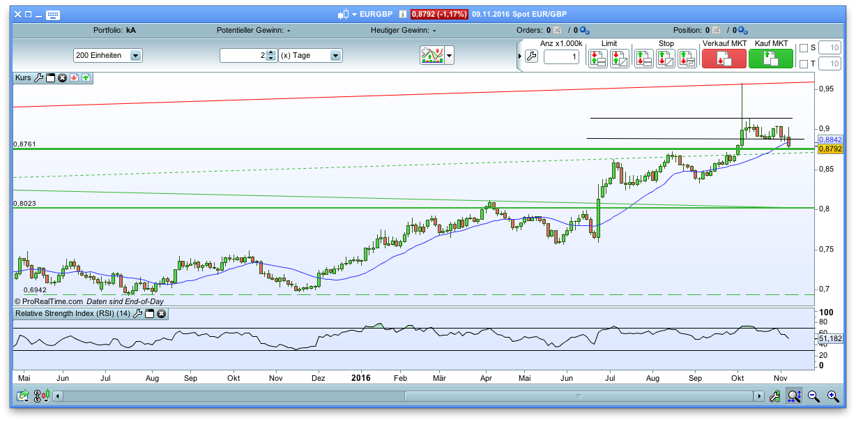 (fortschreitender Siegeszug der Nationalisten) und der nahenden Wahl in Italien und im nächsten Jahr in Frankreich habe ich eine Shortposi EUR/GBP gekauft.