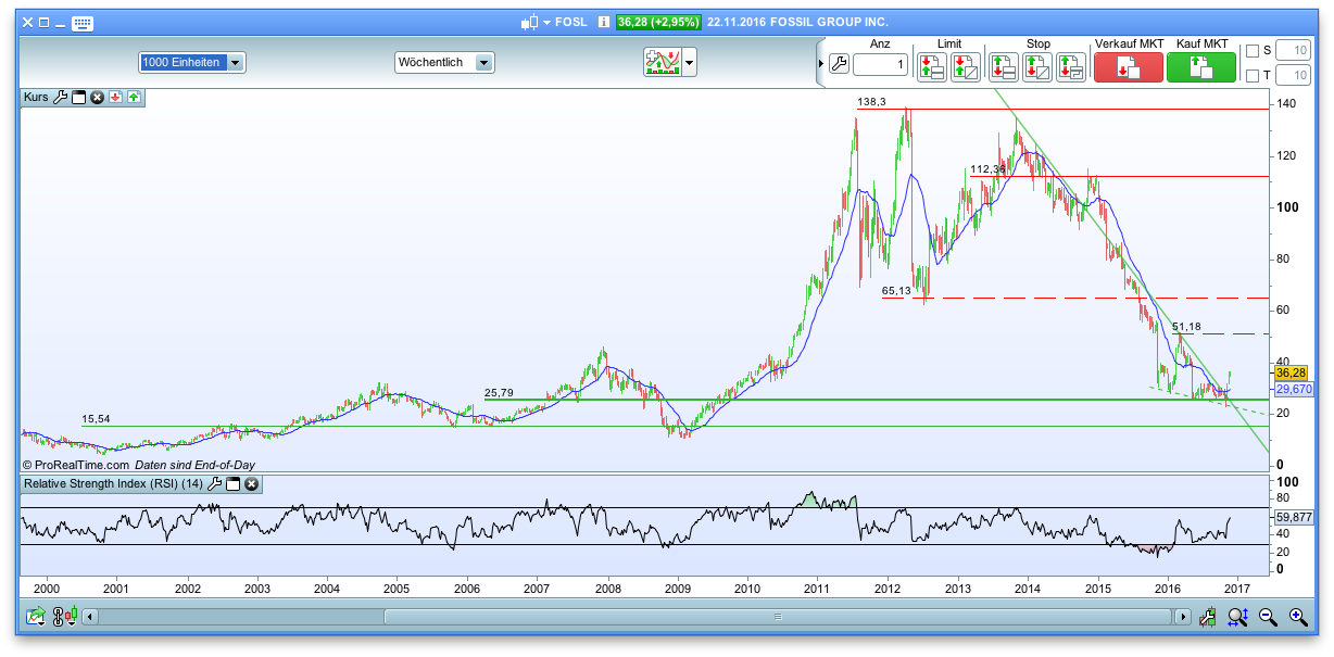 in Fossil eröffnet. Ich beobachte den Wert schon eine Zeit lang, da ich beruflich mit der Retailbranche zu tun habe und die großen Retailer in Deutschland teilweise richtig unter die Räder gekommen sind. Siehe Gerry Weber, Boss, Tom Tailor und Esprit.