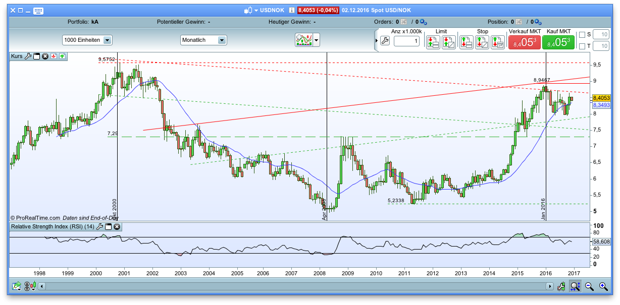 lohnt vielleicht der Blick auf Currencies der zweiten Reihe. USD/NOK hatte einen Abwärts-Zyklus zwischen 2000 und 2008.