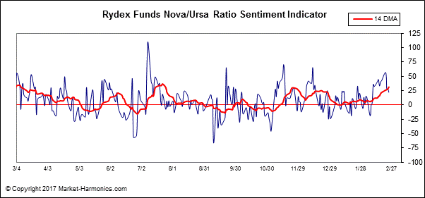 auch nichts: ...Bullish sentiment rebounded to a six-month high, though the rise was only large enough to bring optimism back to its long-term historical average. Bullish sentiment, expectations that stock prices will rise over the next six months, jumped 5.4 percentage points to 38.5%. Optimism was last higher on January 11, 2017 (43.6%). The rise puts bullish sentiment even with its historical average of 38.5%. Neutral sentiment, expectations that stock prices will stay essentially unchanged over the next six months, fell 5.3 percentage points to 29.2%. Neutral sentiment was last lower on January 4, 2017 (28.6%). The historical average is 31.0%. Bearish sentiment, expectations that stock prices will fall over the next six months, is 32.3%—a decline of just 0.1 percentage points. Pessimism remains above its historical average of 30.5% for the fifth time in six weeks.