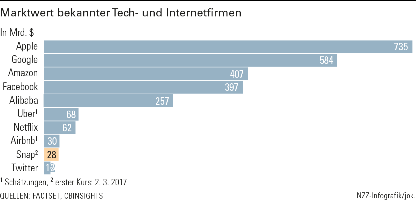 ...aber wie kann ein Unternehmen wie Snap, das bei einem Umsatz von 405 Mio. $ einen Verlust von 515 Mio. $ erwirtschaftet, 30 Mrd. $ wert sein? Und warum stossen sich die Investoren nicht daran, dass sie keinerlei Stimmrechte haben werden? Die auf Wirtschaft spezialisierten und den ganzen Tag in den Büros und in den Handelssälen der Wall Street laufenden TV-Sender wie Bloomberg TV oder CNBC liessen zahlreiche Experten zu Wort kommen. Alle waren sie kritisch, die meisten ablehnend....
