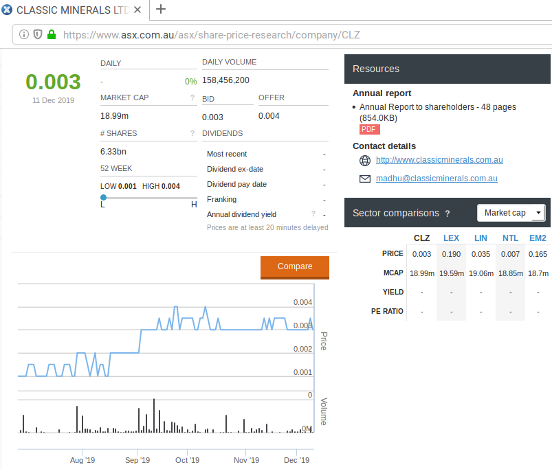 der HP waren (s. Anlage) http://www.classicminerals.com.au/investor.php