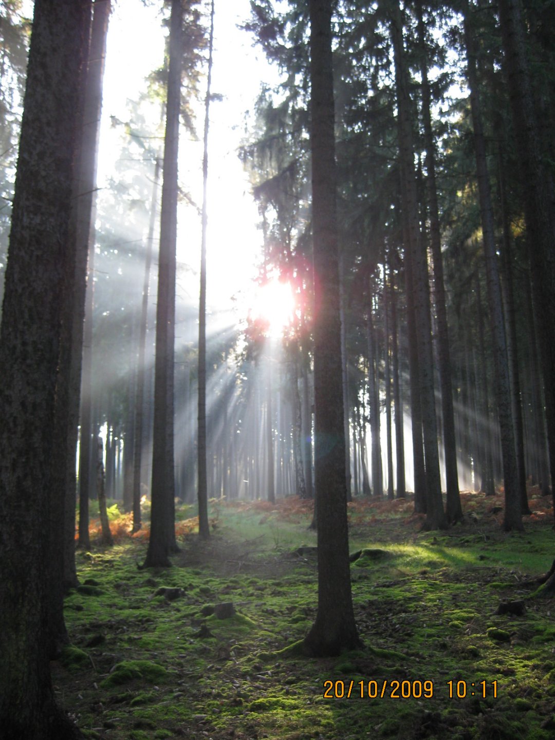 An meinem letzten werk der "Waldandacht" fasziniert mich am meisten die Struktur der Blätter im Vordergrund, die geordnete Unaufgeräumtheit des Waldbodens sowie das Gleißen der Sonne, welches Aufbruchstimmung signalisiert ............ ;-)