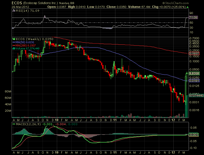 0.0363 / 0.0365 http://www.otcmarkets.com/stock/ECOS/quote