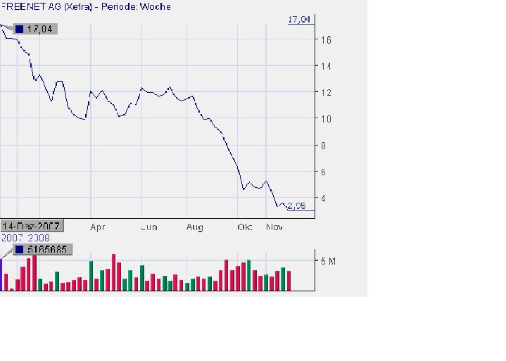 Der Börse schmeckt der ganze Krawall bei Freenet überhaupt nicht. Sie straft die Aktie ab, Freenet-Papiere rauschen zeitweise um mehr al 16 Prozent in den Keller. „Das Gezerre an der Unternehmensspitze belastet den Kurs“, sagte ein Händler.