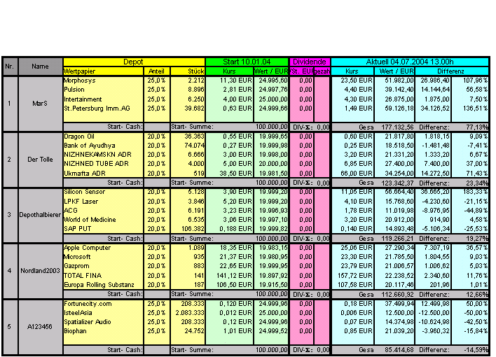 Börsenspiel / Depot PlatzDepot 2004/07 2/75