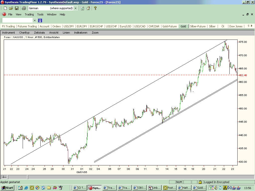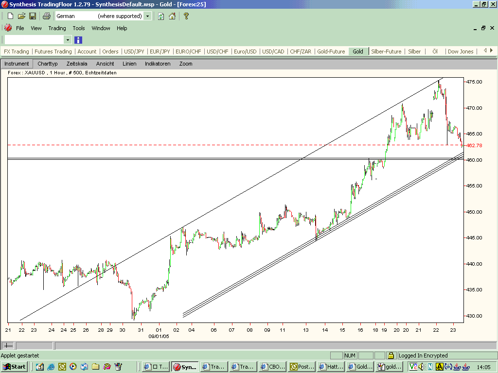 Ich bin dringeblieben, obwohl der SL (Forex-Bid-Kurs von 459.50) unterschritten wurde. Das ganze sieht mir sehr nach SL-Fishing aus, anscheinend gab es viele die SL's um die 460 gesetzt haben, die wurden jetzt abgeholt...