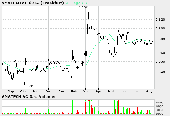 Es gibt keine Story bei Amatech, totaler Quatsch. Würdest du besser informiert sein, dann wüßtest du, dass bei 4MBO ( WKN 548780 ) dagegen die Spekulationen zunehmen.
