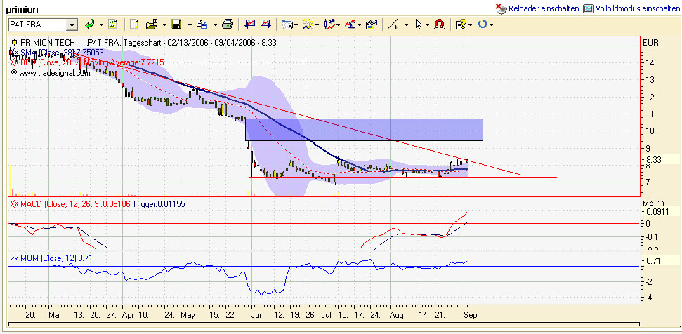 Auch das Chartbild sieht vielversprechend aus, denn sollte der Ausbruch aus der seit 2 Monaten bestehenden Seitwärtsbewegung gelingen darf man wohl mit einem weiteren Anstieg auf 11/12€ hoffen.