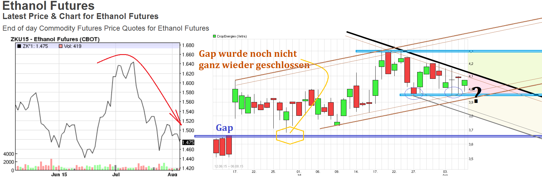 Letztendlich hängt alles ja doch nur am Weltmarktpreis für Ethanol und dem Konkurrenzprodukt Öl. Nachdem in den Vormonaten der Ethanolpreis wieder anzog, zog halt auch der Kurs von CropEnergies wieder an, weil man wieder optimistischer wurde.