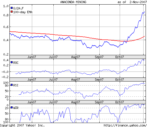 Anaconda has the right to earn a 100% interest in the San Gabriel prospect by making payments totaling US$2.4million over four years. The Company has made a US$20,000 payment on signing. (Please see Anaconda press release dated September 20, 2007 for complete details about the San Gabriel option agreement at www.anacondamining.com).