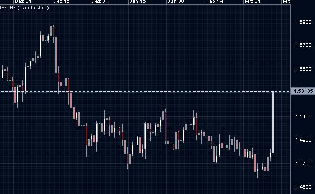 Wow, der Schweizer Franken ist heute mal eben von 1,48 nach 1,53 gesprungen. Das sind 500 Pips.