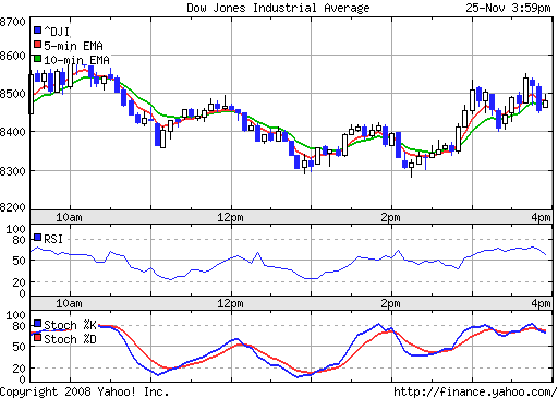 Stellen auf 8.443 - im Tageshoch stand der DJIA bei 8.599 Punkten. Für den