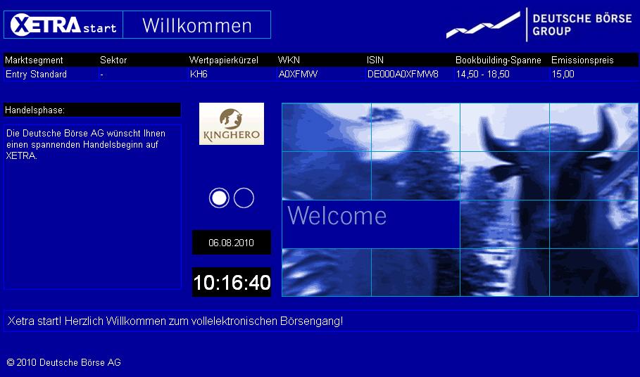 Die Notierungsaufnahme der KINGHERO-Aktien im Entry Standard/Open Market an