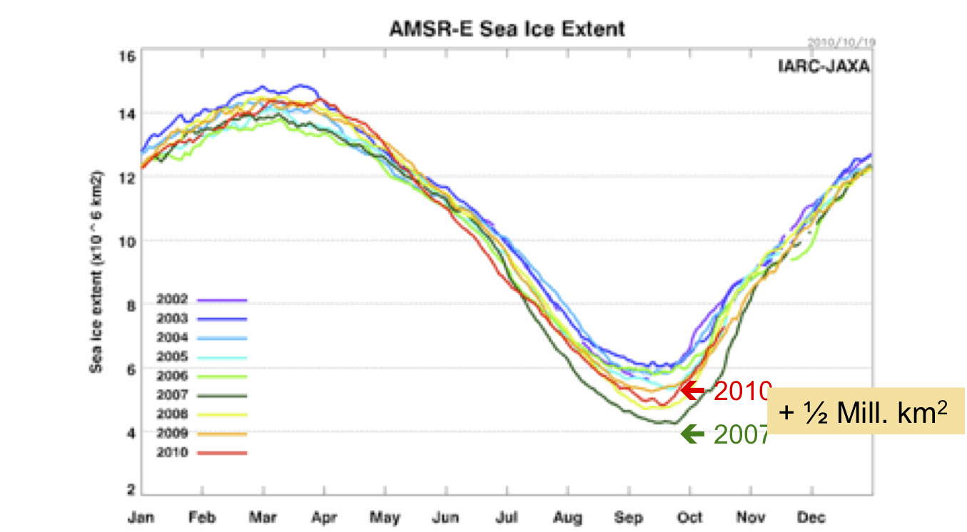 wieso ist in die Arktis dann wieder in der Größe von Deutschland wieder gewachsen?