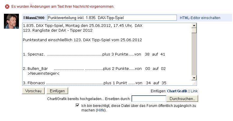 1.837.DAX Tipp-Spiel, Mittwoch, 27.06.2012