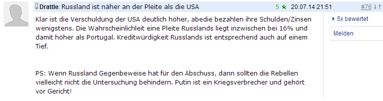 nun bleib mal locker......es gibt keinen Beweis dafür, dass die beiden ukrainischen Jets ( die ja bekannterweise die Separatisten nebst umliegende Zivilisten bombardieren) von Russland aus abgeschossen wurden....was ja einer Kriegserklärung gleichkommen würde........