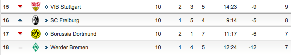 BVB dann absolutes Schlusslicht der Liga.Klopp kloppt nur noch daneben.Keine Taktik die aufgeht.Alles nur noch Rumpelfussball.Typisch für Abstiegskandidaten.