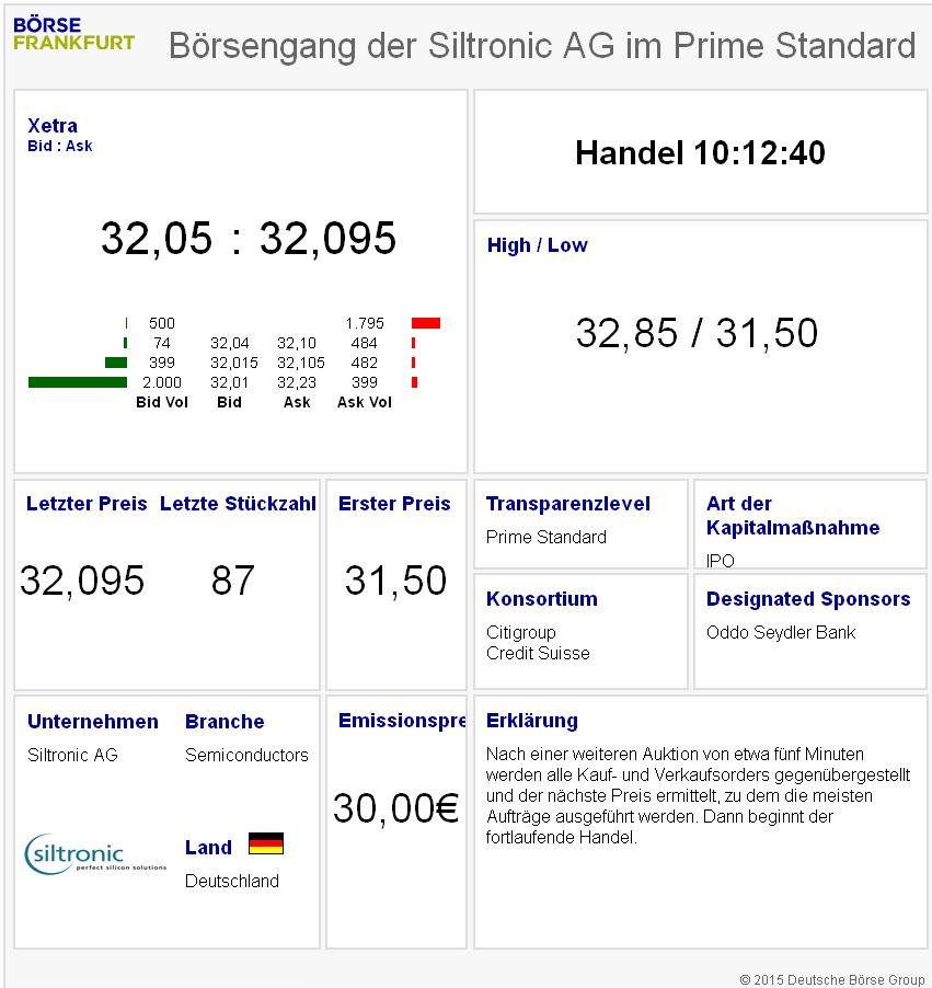 Das verbesserte Marktumfeld nutzt der Spezialchemiekonzern Wacker Chemie, um seine Tochtergesellschaft Siltronic schnell an die Börse zu bringen. Der Freeflow wird maximal 42% betragen – langfristig will der Mutterkonzern sogar die Mehrheit abgeben.