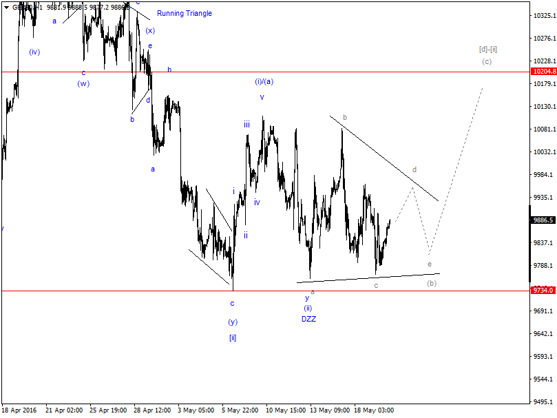bis jetzt läuft alles wie erwartet, die Welle (b) of [d] ist höchtswahrscheinlich ein Dreieck. Wenn die Zählung richtig ist, dann ist nächste Ziel der Welle (c) of [d]