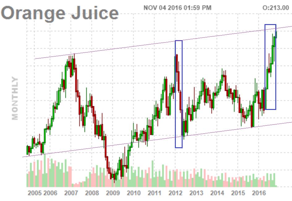 Zu Orangensaft - Charttechnisch könnte sich ein Doppeltop bilden, wenn das dann nach unten geht, könnte ein Einstieg in Short gelingen - mal abwarten.