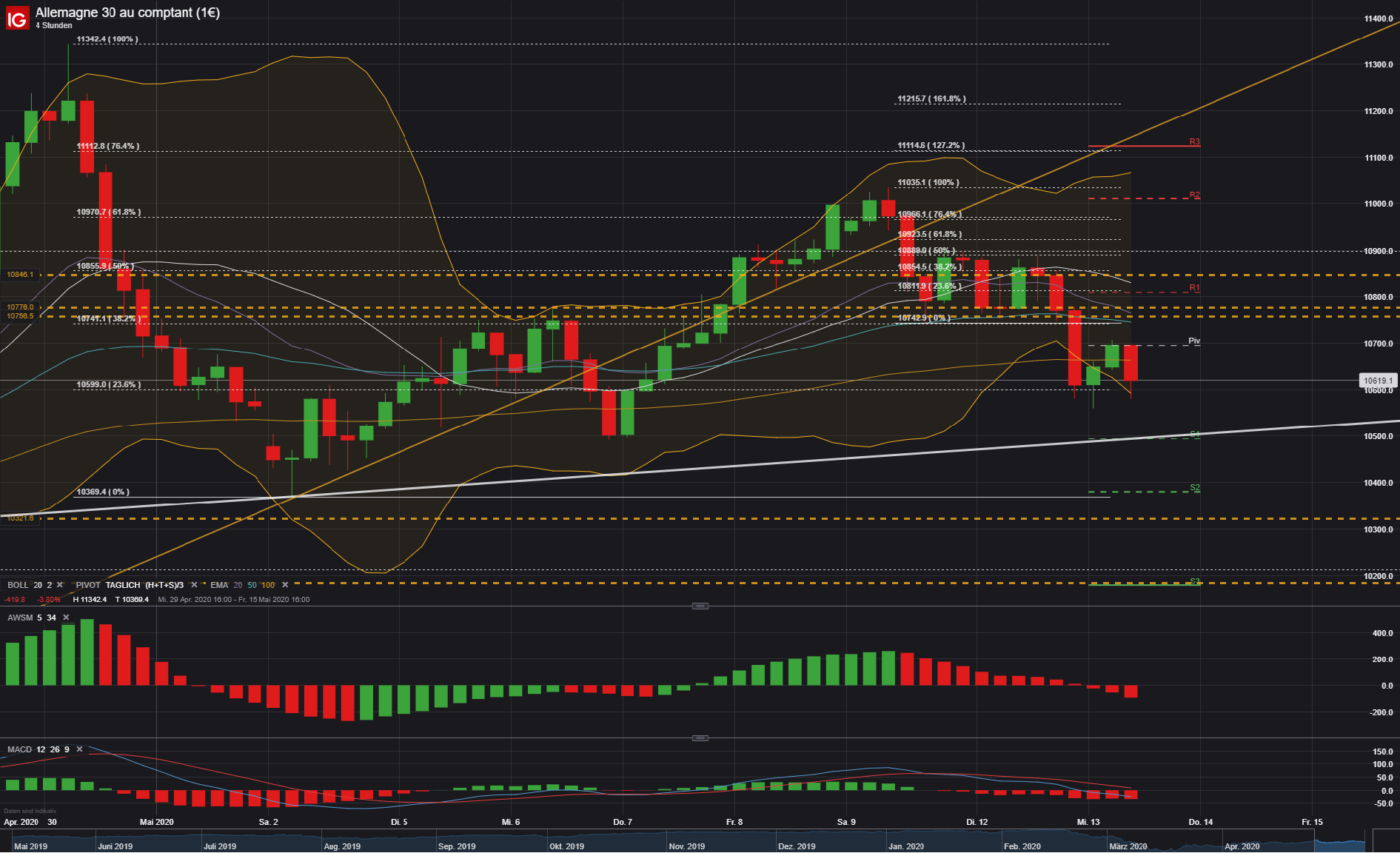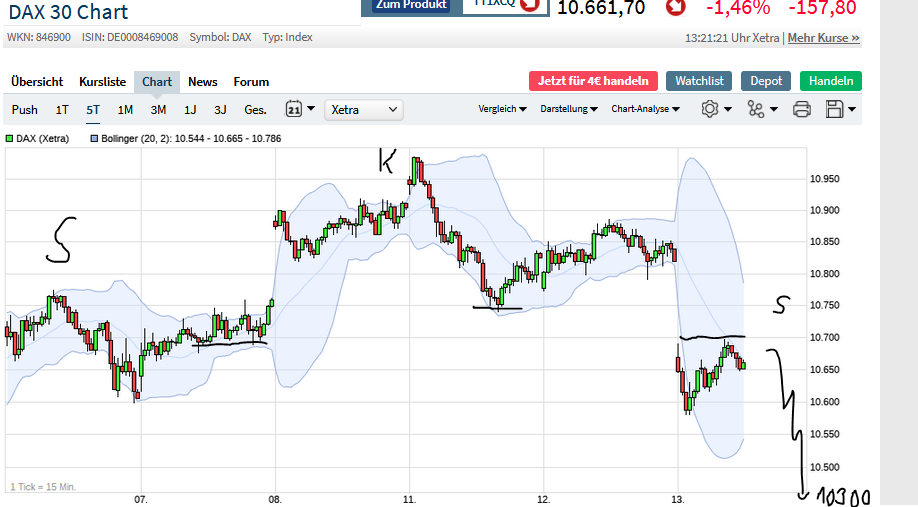 Unter 10600 zum Ende einer vollen Stunde würde weitere Fallkräfte bis 10400 freisetzen. Ansonsten besteht durchaus die Möglichkeit einer technischen Gegenreaktion bis 10750, um dann nach Chartlehre weiter zu fallen.