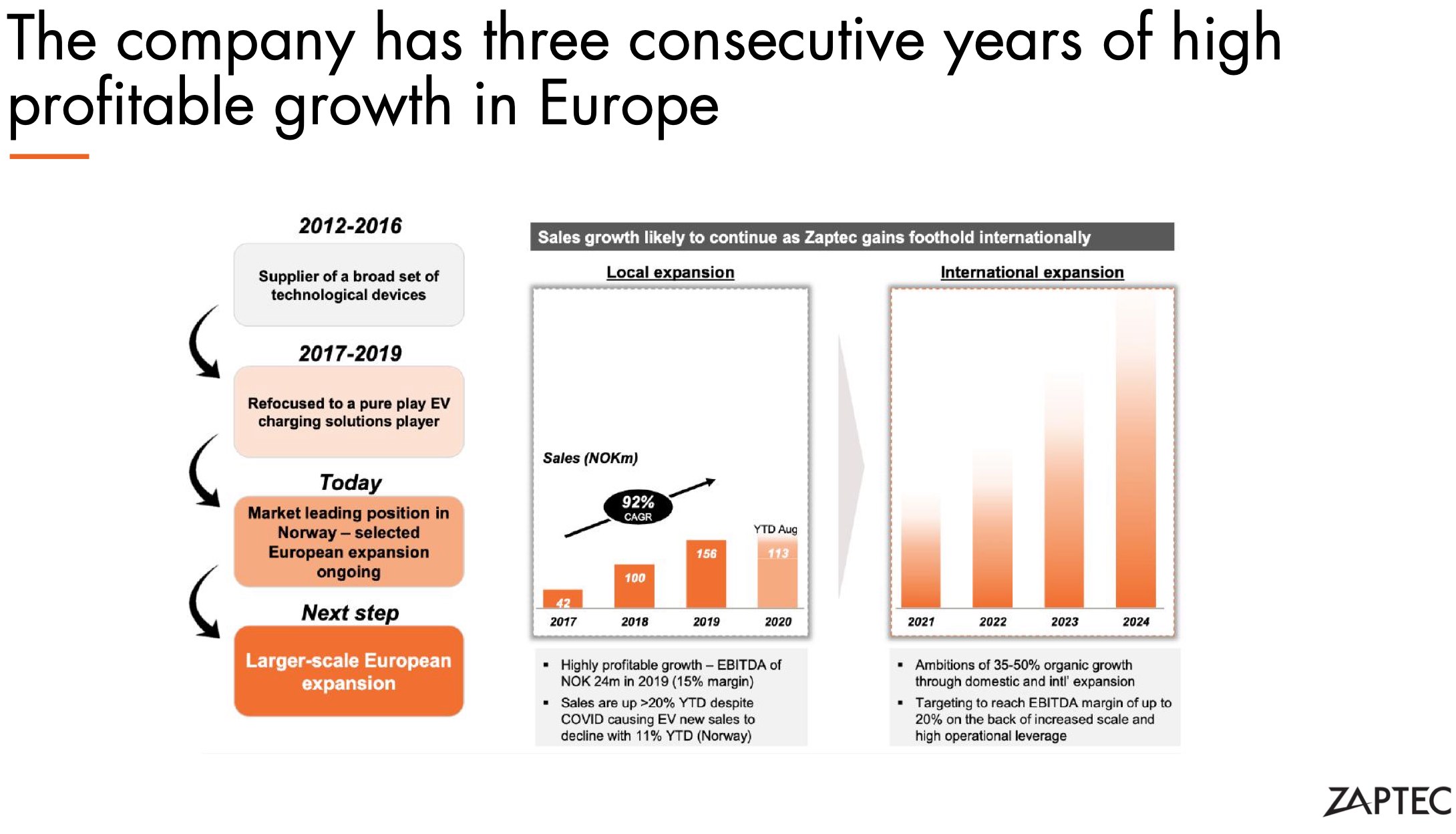 Zaptec bietet nicht nur physische Ladelösungen mit Phasenausgleichssoftware, sondern auch automatische Zahlungsdienste über Charge365. Derzeit generiert Charge365 pro zahlendem Benutzer etwa 30-40 NOK pro Monat (Umsatz pro Benutzer variiert mit den Strompreisen und dem Ladegerätverbrauch). Das tatsächlich erzielte Einkommen basiert jedoch auf dem gesamten Ladevolumen in kWh und kann von Monat zu Monat unterschiedlich sein. Charge365 ist nach der Übernahme von Charge365 durch Zaptec im vierten Quartal 2019 eine relativ neue Ergänzung des Zaptec-Angebots. Die Akquisition bietet große Synergien mit den Ladelösungen von Zaptec und ist eine natürliche Erweiterung des Mehrbenutzerangebots von Zaptec und stärkt die Position von Zaptec als Anbieter vollständiger Ladelösungen . Charge365 verzeichnet mit derzeit ca. 4.000 zahlenden Nutzern ein schnelles Wachstum, fast doppelt so hoch wie zu Beginn des Jahres 2020. Obwohl Charge365 derzeit nur einen bescheidenen Anteil am Umsatz von Zaptec ausmacht, geht das Unternehmen davon aus, dass Charge365 eine zunehmend wichtige Quelle für hohe Margen sein wird wiederkehrende Einnahmen.