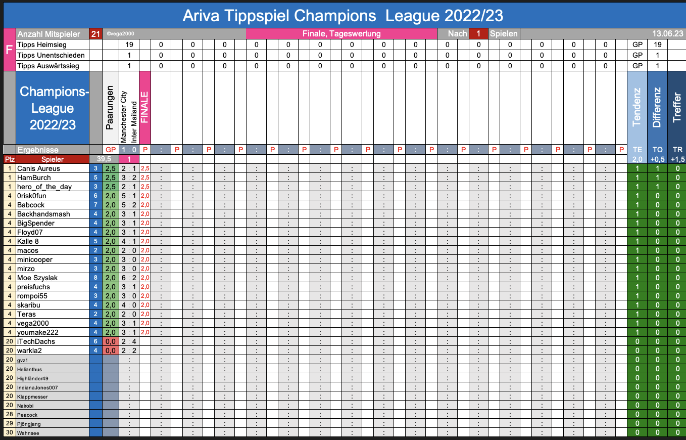 Champions 2022/23, FINALE, mein Tipp: