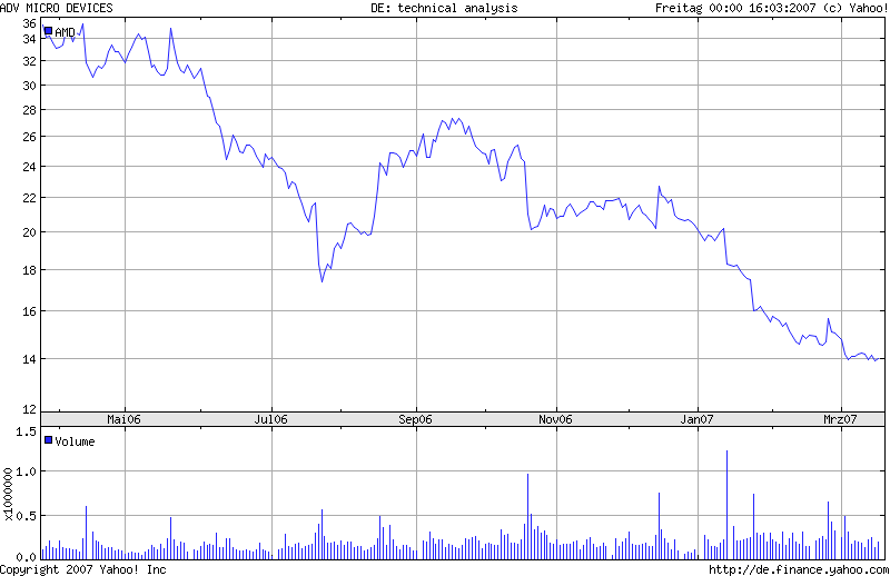 Das ist fast ein Jahrestief und diese günstige Bewertung ist ein wenig ungerechtfertigt. Die Umstellung auf 65 nm ist derzeit im Gange und dann werden viele wohl wieder lieber auf AMD setzen.