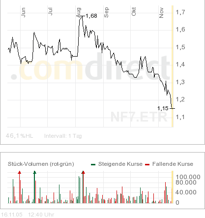 ist der Kurs auf Talfahrt: von 1,70 auf 1,10 Euro!